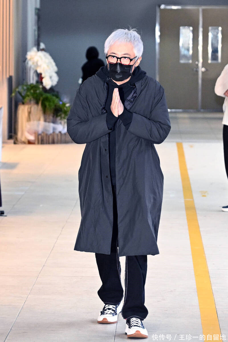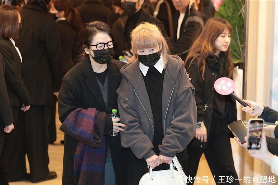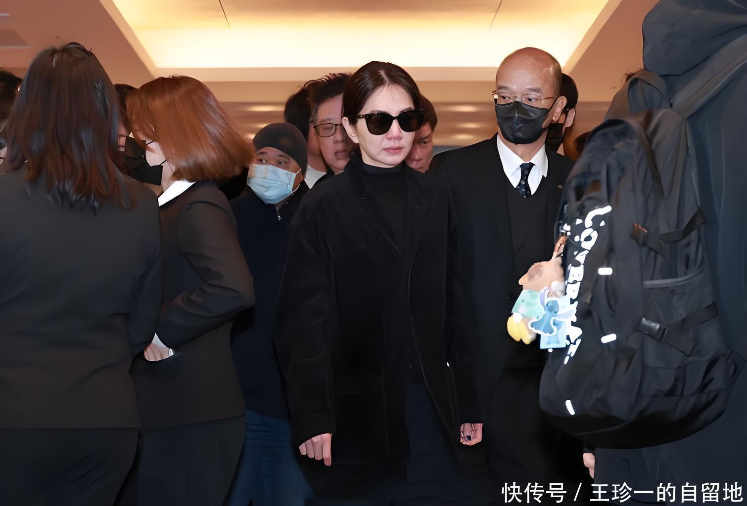 她戴着口罩,穿着一身黑衣在袁惟仁的告别仪式上现身了。